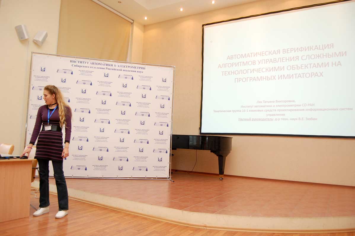 10.10.2017 Атомные часы, эмбрионы и психологические качества человека обсуждали участники молодёжной конференции в АкадемгородкеТрадиционная молодёжная конкурс-конференция «Оптические и информационные технологии» прошла с 25 по 27 сентября 2017 года в новосибирском Академгородке. Её организовали совместно Институт автоматики и электрометрии (ИАиЭ) СО РАН и Новосибирский государственный университет (НГУ) (при финансовой поддержке Российского научного фонда). Открытие конференции Открыл мероприятие Иван Лобач, председатель Совета молодых учёных ИАиЭ СО РАН. Он рассказал немного об истории конференции: «Около 10 лет назад в Институте была создана студенческая ячейка, поддержанная американскими оптическими обществами SPIE и OSA. В 2008 году было решено провести здесь конференцию «Фотоника», и первый опыт оказался достаточно успешным. Это стало традиционным мероприятием и конференция сейчас проводится уже в 7-й раз, но уже с другим названием, потому что в Институте есть и оптики, лазерщики, и специалисты по информационным технологиям. В этом году конференция приурочена к 60-летнему юбилею Института автоматики и электрометрии. Хотелось сделать её более неформальной, чем обычные «взрослые» конференции. Для этого решили провести её как конкурс, где участники соревнуются между собой. Кроме того, мы стараемся каждый раз включать новые интересные мероприятия». Конференция проводилась в три дня. Первый день был посвящён информационным технологиям, второй – оптическим, а третий – «лучным». Участники представили доклады об управлении сложными технологическими системами, регистрации и хранении данных, обработке изображений, моделировании движения; исследовали темы о биологических сенсорах, ДНК, эмбрионах и квантовых метаматериалах. Также программа конференции включала в себя лекции приглашённых докладчиков. В этом году в секции информационных технологий Андрей Дубатов (National Instruments) представил технологии компании National Instruments, которые могут помочь молодым учёным в автоматизации экспериментов. В секции оптических технологий приглашённый докладчик из Москвы Илья Беседин (НИТУ МИСиС) рассказал, как в России из метаматериалов делают кубиты и квантовые компьютеры. Приглашённый лектор Денис Харенко (ИАиЭ СО РАН) сделал обзорный доклад о волоконных фемтосекундных лазерах и улучшении их характеристик с помощью вынужденного комбинационного рассеяния света. Заседания секций Не менее интересными оказались доклады в конкурсной программе. В секции информационных технологий жюри отметило доклад Михаила Городилова (ИАиЭ СО РАН) «Система регистрации и отображения на базе ПК общего назначения» (о тренажёрах для космонавтов МКС) – как законченную работу с хорошим представлением и уверенными ответами на вопросы. Доклад Екатерины Меркуловой (НИИ физиологии и фундаментальной медицины) «Оценка психологических качеств по показаниям электроэнцефалограммы» вызвал большое количество вопросов. Она подробно рассказала о своей работе, о том, как с помощью приборов, автоматизируя процесс, можно узнать, за что отвечают отдельные участки мозга человека, как можно определить, например, профессиональные склонности, пригласила поучаствовать в исследованиях. Институт ядерной физики СО РАН был представлен рядом участников, занимающихся различными иссле