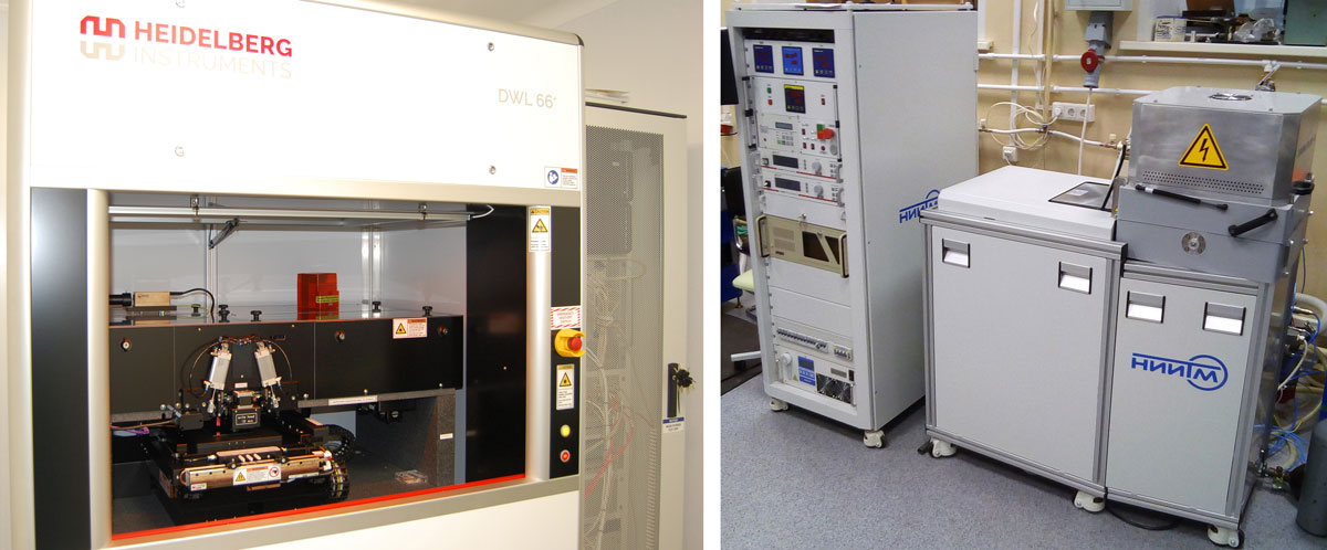 Новым важным направлением исследований в ЦКП «Спектроскопия и оптика» является развитие методов прецизионного 3D-прототипирования металлических деталей с помощью наплавления и спекания материалов под действием лазерного излучения. Для реализации указанных требований ИАиЭ СО РАН (в рамках софинансирования по гранту ФЦП) разработал установку прецизионной 3D-печати металлических деталей. «Страна вкладывает средства в финансирование таких центров коллективного пользования, чтобы любой завод, предприятие, научный институт могли иметь доступ к современному оборудованию», – поясняет руководитель ЦКП «Спектроскопия и оптика» д.т.н. Виктор Павлович Корольков. – «Это площадка для научно-инновационного сотрудничества, и мы готовы к проведению совместных проектов и исследований». Ознакомиться с полным перечнем оборудования и подать заявку на услуги ЦКП «Спектроскопия и оптика» можно в разделе УСЛУГИ на портале Научно-технологическая инфраструктура Российской Федерации: http://ckp-rf.ru/ckp/3046/. Сайт ЦКП «Спектроскопия и оптика» - https://www.iae.nsk.su/ru/collab-center. Лазерная литографическая установка DWL-66+ HiRes (слева) и установка реактивного ионного травления «ПЛАЗМА-200ТМ-1» (справа) в ЦКП «Спектроскопия и оптика»