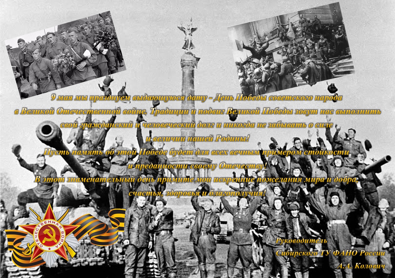 Руководитель Сибирского территориального управления ФАНО России А. А. Колович поздравляет с праздником.