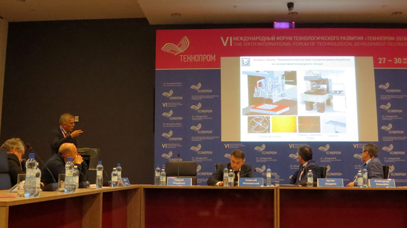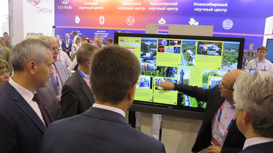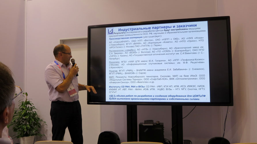 Results04.09.2018 Институт автоматики и электрометрии СО РАН принял участие в VI Международном форуме технологического развития «Технопром»27-30 августа в Новосибирске прошел VI Международный форум технологического развития и выставка «Технопром-2018». Ключевая тема форума в 2018 году - Наука как индустрия в условиях «идеального шторма». Специальной повесткой форума стало обсуждение проекта плана развития новосибирского Академгородка как территории с высокой концентрацией исследований и разработок. Сотрудники Института автоматики и электрометрии СО РАН приняли активное участие в деловой программе форума: пленарных заседаниях, конференциях, стратегических сессиях, круглых столах, дискуссионных и презентационных площадках. Форум и выставку посетили официальные лица: Министр науки и высшего образования РФ М.М. Котюков, помощник президента РФ А.А. Фурсенко, врио главы Новосибирской области А.А. Травников, первый заместитель Председателя Государственной Думы А.Д. Жуков, президент Российской академии наук академик А.М. Сергеев. Директор ИАиЭ СО РАН чл.-корр. РАН С.А. Бабин представил им инвестиционный проект в сфере науки «Центр оптических информационных технологий и прикладной фотоники (ЦОИТиПФ)», который предлагается к реализации в рамках программы «Академгородок 2.0». В своём выступлении С.А. Бабин отметил, что инициатор проекта, Институт автоматики и электрометрии СО РАН, является ведущей научной организацией в области оптоволоконных лазеров и систем, спектроскопии, оптико-информационных и информационных технологий. Высокий научный задел и междисциплинарный характер деятельности Института обеспечит достижение решений, направленных на прорывное развитие российского приборостроения и других высокотехнологичных отраслей промышленности. Проект имеет высокий потенциал реализации, поскольку у ИАиЭ СО РАН налажены тесные связи с промышленными предприятиями, и многие разработки ими уже востребованы. Директор ИАиЭ СО РАН чл.-корр. РАН С.А. Бабин представляет проект ЦОИТиПФ Министру науки и высшего образования РФ М.М. Котюкову, врио главы Новосибирской области А.А. Травникову, президенту РАН академику А.М. Сергееву Проект Центра оптических информационных технологий и прикладной фотоники также был представлен С.А. Бабиным на презентационной сессии на стенде проектов развития Новосибирского научного центра. Директор ИАиЭ СО РАН чл.-корр. РАН С.А. Бабин представляет проект ЦОИТиПФ на презентационной сессии на стенде проектов развития Новосибирского научного центра Научный руководитель ИАиЭ СО РАН академик А.М. Шалагин принял участие в стратегической сессии «Стратегия социально-экономического развития Новосибирской области до 2030 года» с докладом на тему «О перспективных научно-производственных проектах». Он привлёк внимание участников к проблеме реализации таких проектов вследствие отсутствия источников финансовой поддержки этапа «от опытного образца до продукта товарного вида» на примере отдельных разработок Института автоматики и электрометрии СО РАН. А.М. Шалагин отметил, что глобальное решение проблемы возможно только на государственном уровне, а преодоление Институтом имеющихся ограничений с выходом на проекты полного цикла возможно посредством реализации проекта Центра оптических информационных технологий и 