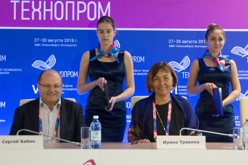 Среди сотрудников, представлявших разработки Института и принявших участие в заседаниях форума, были также В.П. Бессмельцев, С.В. Власов, Е.И. Донцова, А.Е. Маточкин, А.Н. Матросов, М.В. Наумова, Н.Г. Потатуркина. Экспонаты ИАиЭ СО РАН на выставке «Технопром-2018» В рамках форума также прошло несколько заседаний с участием советов научной молодёжи Новосибирска. Учёный секретарь ИАиЭ СО РАН к.ф.-м.н. Е.И. Донцова приняла участие в Пленарном заседании «Притяжение талантов» и круглом столе, организованном помощником Губернатора Новосибирской области М.И. Ананич. На заседании прошла презентация предложений АО «Корпорация МСП» по программам поддержки малого и среднего бизнеса, маркетинговой поддержки исследований и разработок; обсуждались проблемы молодых инноваторов. Фотографии: 1, 3, 8, 12-16 – М.В. Наумова, 2, 4, 6 – Н.Г. Потатуркина, 5 – ТАСС (https://technoprom2018.tassphoto.com/), 7 – Ольга Иванова (http://www.sbras.info), 9, 10, 11 – Ю.С. Позднякова