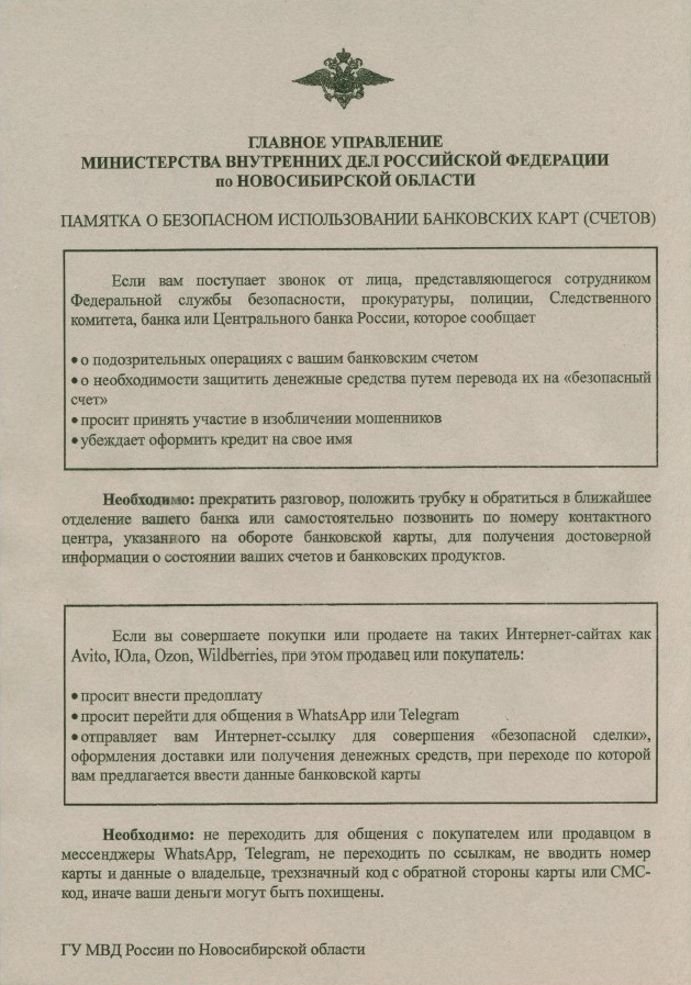 Памятка о безопасном использовании банковских карт (счетов) (pdf)