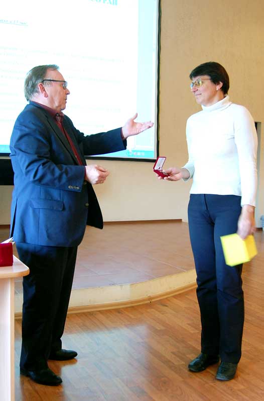 Почётное звание «Заслуженный ветеран Сибирского отделения РАН» является наградой СО РАН, вручаемой гражданам РФ, имеющим непрерывный стаж работы в научных организациях не менее 20 лет, в том числе не менее 10 лет по последнему месту работы, за участие в проведении и развитии фундаментальных и поисковых научных исследований по важнейшим направлениям наук, направленных на получение новых знаний и способствующих технологическому, экономическому, социальному и духовному развитию России и региона. Фото: А.Т. Когабаева |