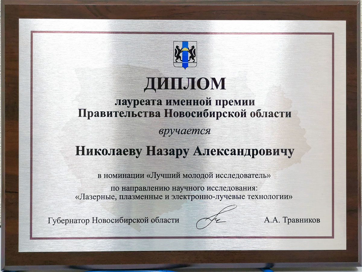 Research Results 1530.09.2020 Молодой учёный ИАиЭ СО РАН награждён премией Правительства Новосибирской областиРуководитель тематической группы терагерцовой фотоники Института автоматики и электрометрии СО РАН к.т.н. Николаев Назар Александрович стал лауреатом премии Правительства Новосибирской области в номинации «Лучший молодой исследователь» по направлению научного исследования «Лазерные, плазменные и электронно-лучевые технологии». Он представил проект «Нелинейно-оптические источники интенсивного излучения миллиметрового диапазона длин волн». Исследование авторов направлено на поиск эффективных нелинейнооптических генераторов миллиметрового диапазона длин волн для создания лидара – измерительного прибора для мониторинга малых газовых компонент приземной атмосферы. «Создание мм-лидара позволит решить ряд проблем, в том числе актуальных и для Новосибирской области, – поясняет Назар Николаев. – С точки зрения аграрной промышленности он позволит проводить мониторинг в реальном времени посевов на большой площади, например, непосредственно контролировать климатические условия приземной атмосферы (влажность и температуру) и уровень углекислого и других газов. Это поможет оперативно регулировать поливы и осуществлять уход за угодьями, в итоге повышая урожайность. Другой сценарий использования мм-лидара – экологический контроль. Мониторинг в реальном времени обширных площадей индустриальных районов позволит оперативно реагировать на превышающие ПДК выбросы вредных радикалов». В этом году Правительством региона молодым учёным присуждены 17 именных премий по таким ключевым направлениям как медицина, каталитические технологии, лазерные технологии, приборостроение и цифровые системы, сельское хозяйство и экология, создание новых материалов для сферы ЖКХ, экономика. Также Правительство региона выделило 10 именных стипендий для проведения перспективных научных исследований и разработок. Кроме того, 12 молодых учёных получили гранты на проведение научно-исследовательской работ, поддержку Правительства региона в 2020 году. Исследования и разработки лауреатов этого года ориентированы на решение практических задач развития Новосибирской области. «Учёные и вузы Новосибирской области активно приступили к реализации мероприятий национального проекта «Наука» на всех его направлениях – от флагманского мегасайенс проекта СКИФ до участия в отдельных конкурсах. С гордостью отмечу, что наши учёные и институты участвуют в создании научных центров мирового уровня. Мы видим, насколько высокий интерес вызывают конкурсы, направленные на поддержку молодых учёных региона. В этом году соревнование было очень острым – всего было подано 137 заявок, до сегодняшнего мероприятия дошли 39 лауреатов. Поздравляю вас, и хочу пожелать, чтобы эта победа стала одной из многих побед в вашей долгой, богатой, результативной, интересной научной жизни», – отметил в своём обращении к победителям конкурсов губернатор Андрей Травников. Фотография предоставлена пресс-службой губернатора Новосибирской области Диплом лауреата именной премии Правительства НСО Николаева Н.А. Распоряжение от 08.09.2020 № 396-рп – О присуждении именных премий Правительства Новосибирской области за выдающиеся научные достижения в 2020 году (pdf)